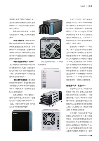 www.edntaiwan.com 11PULSE%u610f%u8b58%u5230%uff0c%u5fc5%u9808%u6b63%u8996%u81ea%u5df1%u9577%u671f%u4ee5%u4f86%u4e00%u76f4%u5ffd%u8996%u7684%u5099%u4efd%u9632%u8b77%u6f0f%u6d1e%u4e26%u5c0d%u5176%u9032%u884c%u4fee%u88dc%u3002%u672c%u6587%u4ecb%u7d39%u9019%u500b%u554f%u984c%u4ee5%u53ca%u6211%u5982%u4f55%u52a0%u4ee5%u89e3%u6c7a%u3002%u7c21%u55ae%u4f86%u8aaa%uff0c%u5132%u5b58%u88dd%u7f6e%u4e0a%u7684%u8cc7%u6599%u53ef%u80fd%u6703%u56e0%u4ee5%u4e0b%u4e09%u7a2e%u4e3b%u8981%u56e0%u7d20%u800c%u906d%u53d7%u640d%u58de%uff1a%u30fb%u60e1%u610f%u8edf%u9ad4%u653b%u64ca%uff1a%u75c5%u6bd2%u3001%u52d2%u7d22%u8edf%u9ad4%u6216%u5176%u4ed6%u60e1%u610f%u8edf%u9ad4%u53ef%u80fd%u6703%u7834%u58de%u8cc7%u6599%uff0c%u7121%u8ad6%u662f%u900f%u904e%u76f4%u63a5%u9023%u63a5%u7684%u96fb%u8166%u3001%u5340%u57df%u7db2%u8def(LAN)%u7684%u5176%u4ed6%u88dd%u7f6e%uff0c%u9084%u662f%u4f86%u81ea%u5ee3%u57df%u7db2%u8def(WAN)%u7684%u653b%u64ca%u3002%u91dd%u5c0d%u9019%u985e%u5a01%u8105%uff0cQNAP%u53ef%u63d0%u4f9b%u5b9a%u671f%u57f7%u884c%u7684%u6574%u5408%u5f0f%u6383%u63cf%u8207%u8b66%u5831%u6a5f%u5236%u3002%u30fb%u786c%u789f%u6216%u56fa%u614b%u786c%u789f(SSD)%u6545%u969c%uff1a%u70ba%u4e86%u964d%u4f4e%u98a8%u96aa%uff0c%u6211%u7684%u6240%u6709NAS%u81f3%u5c11%u90fd%u63a1%u7528%u96d9%u786c%u789fRAID 1%u914d%u7f6e%uff0c%u4ee5%u63d0%u4f9b%u57fa%u672c%u7684%u5197%u9918%u4fdd%u8b77%u3002%u6b64%u5916%uff0c%u90e8%u4efd%u88dd%u7f6e%u9084%u4f7f%u7528%u4e09%u9846%u4ee5%u4e0a%u7684%u786c%u789f%uff0c%u85c9%u7531RAID 5%u63d0%u4f9b%u66f4%u597d%u7684%u6548%u80fd%u8207%u5bb9%u932f%u80fd%u529b%u3002%u30fb%u6574%u53f0%u5132%u5b58%u88dd%u7f6e%u640d%u58de%uff1a%u9019%u53ef%u80fd%u7531%u65bc%u96fb%u6e90%u4f9b%u61c9%u5668%u6545%u969c%uff0c%u6216%u8005%u4e3b%u6a5f%u677f%u4e0a%u7684%u67d0%u500b%u95dc%u9375%u5143%u4ef6%u640d%u58de%u3002%u6709%u6642%u5019%uff0c%u640d%u58de%u7684%u96f6%u4ef6%u53ef%u4ee5%u8f15%u6613%u66f4%u63db%uff0c%u4f46%u6709%u6642%u5019%u6574%u53f0NAS%u53ea%u80fd%u5831%u5ee2%u6254%u6389%u3002%u6211%u6700%u8fd1%u5c31%u9047%u5230%u4e86%u7b2c%u4e09%u7a2e%u60c5%u6cc1%u3002%u7576%u6642%uff0c%u6211%u7684%u7db2%u8def%u4e0a%u6709%u5169%u53f0NAS%u5728%u904b%u884c%u3002%u5176%u4e2d%u4e00%u53f0%u662f%u56db%u786c%u789f%u7684QNAP TS453Be%uff0c%u4e3b%u8981%u7528%u4f86%u5b58%u653e%u97f3%u6a02%u3001%u7167%u7247%u5eab%u4ee5%u53ca%u591a%u5e74%u7d2f%u7a4d%u7684%u500b%u4eba%u6a94%u6848%uff1a %u8207%u5b83%u4e26%u6392%u7684%u53e6%u4e00%u53f0TS-328%u5247%u8ca0%u8cac%u7db2%u8def%u5099%u4efd%uff1a %u9019%u53f0TS -328%u7684%u4e00%u90e8%u4efd%u5132%u5b58%u7a7a%u9593%u7528%u65bcMac%u7684Time Machine%u5099%u4efd%uff0c%u5176%u9918%u5247%u5b58 %u653e %u5fae%u8edf(Micros of t) W in d ow s%u96fb %u8166 %u7684 %u5099 %u4efd%uff0c%u4f7f %u7528%u300c %u6a94%u6848%u6b77%u53f2 %u300d(File Histor y)%u8a18%u9304%u548c%u820a%u7248( %u96d6 %u7136%u5df2 %u88ab %u5fae %u8edf %u6dd8 %u6c70 %u4f46 %u4ecd%u53ef%u7528 %u7684 )%u300c%u5099%u4efd%u8207%u9084 %u539f%u300d(Backup & Restore)%u7d44%u5408%u3002%u672a%u4f86%uff0c%u6211%u53ef%u80fd%u8003%u616e%u6539%u7528%u7b2c%u4e09%u65b9%u5099%u4efd%u65b9%u6848%u3002%u907a%u61be%u7684%u662f%uff0c%u4eca%u5e74%u7a0d%u65e9TS-328%u5c31%u58de%u4e86%u3002%u96d6%u7136%u5b83%u9084%u80fd%u767c%u51fa%u6062%u5fa9%u539f%u5ee0%u8a2d%u5b9a%u7684%u300c%u55f6%u300d%u8072%uff0c%u4f46%u7121%u8ad6%u600e%u9ebc%u5617%u8a66%u6062%u5fa9%u97cc%u9ad4%u90fd%u7121%u6fdf%u65bc%u4e8b%u3002%u6211%u63a8%u6e2c%u662f%u4e3b%u6a5f%u677f%u4e0a%u7684%u67d0%u4e9b%u95dc%u9375%u5143%u4ef6%u71d2%u6bc0%u4e86%u3002%u5118%u7ba1TS-328%u4e0a%u7684%u8cc7%u6599%u76f8%u8f03%u65bcTS-453Be%u4e26%u4e0d%u90a3%u9ebc%u95dc%u9375%uff0c%u56e0%u70ba%u6240%u6709%u5099%u4efd%u7684%u96fb%u8166%u672c%u8eab%u4ecd%u7136%u5b8c%u597d%uff0c%u4f46%u6211%u4ecd%u7136%u5e0c%u671b%u76e1%u5feb%u6062%u5fa9%u5099%u4efd%u7cfb%u7d71%uff0c%u4e26%u78ba%u4fdd%u672a%u4f86%u80fd%u6709%u66f4 %u5b8c %u5584 %u7684 %u8cc7 %u6599%u4fdd %u8b77 %u6a5f %u5236%u3002%u5f88 %u986f %u7136%u5730%uff0c%u5982%u679cTS-453Be%u767c%u751f%u6545%u969c(%u6216%u540c%u6642%u767c%u751f%u6545%u969c)%uff0c%u6211%u7684%u60c5%u6cc1%u9084%u6703%u66f4%u7cdf%u3002%u4fee%u5fa9%u7b2c%u4e00%u6b65%uff1a%u66f4%u63dbNAS%u6211%u5728eBay%u4e0a%u627e%u5230%u4e86%u4e00%u53f0%u72c0%u6cc1%u826f%u597d%u7684%u4e8c%u624bTS-328%uff0c%u50f9%u683c%u6bd4%u6211%u4e94%u5e74%u524d%u8cb7%u5168%u65b0%u7684%u6642%u5019%u8cb4%u4e86%u8fd1100%u7f8e%u5143%u3002%u4e0d%u904e%u8ce3%u5bb6%u9644%u8d08%u4e86%u4e00%u53f0%u4e8c%u624b%u76848%u57e0GbE%u4ea4%u63db%u6a5f%u3002%u5f88%u5feb%u5730%uff0c%u9019%u53f0%u88dd%u7f6e%u5c31%u9001%u9054%u4e86%uff0c%u6211%u5c07%u820a%u7684NAS%u786c%u789f%u6309%u7167%u539f%u672c%u7684%u9806%u5e8f%u88dd%u5165%u9019%u53f0%u300c%u65b0%u300d%u7684TS-328%uff0c%u7136%u5f8c%u6309%u4e0b%u96fb%u6e90%u9375%uff0c%u7948%u79b1%u5b83%u80fd%u6b63%u5e38%u555f%u52d5%u3002%u597d%u6d88%u606f%u662f%uff0c%u5b83%u6210 %u529f%u958b%u6a5f%u4e86%uff01%u7531%u65bc%u9019%u53f0NAS%u7684%u524d%u4efb%u4e3b%u4eba%u6700%u8fd1%u624d%u8b93%u5b83%u9000%u5f79%uff0c%u65b0NAS%u7684%u4e3b%u6a5f%u677f%u97cc%u9ad4%u7248%u672c%u8207 %u6211 %u786c %u789f %u4e0a %u7684 %u7248 %u672c %u7565 %u6709 %u5dee %u7570%uff0c%u4f46%u9019%u5f88%u5feb%u5c31%u900f%u904e%u7dda%u4e0a%u66f4%u65b0%u89e3%u6c7a%u4e86%u3002%u6b64%u5916%uff0cQNAP%u7684%u96f2%u7aef%u670d%u52d9%u4e5f%u5075%u6e2c%u5230%u9019%u53f0%u88dd%u7f6e%u7684%u786c%u9ad4%u8207%u820a%u6a5f%u578b%u4e0d%u540c%uff0c%u4e26%u8981