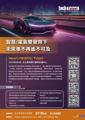 %u7acb%u5373%u9810%u8a02%uff1a Michael.Sun@aspencore.com (886-2) 2759-1366 Ext. 300%u4e3b%u8fa6%u55ae%u4f4d%uff1a%u5728%u5404%u7a2e%u65e5%u65b0%u6708%u7570%u7684%u667a%u6167%u5316%u8207%u96fb%u6c23%u5316%u6280%u8853%u7684%u76f8%u52a9%u4e0b%uff0c%u7d50%u5408%u96fb%u52d5%u8eca%u8207%u81ea%u99d5%u8eca%u7279%u6027%u7684%u300c%u672a%u4f86%u8eca%u300d%u61c9%u904b%u800c%u751f%uff0c%u4e26%u5728%u96fb%u52d5%u8eca(EV)%u8072%u52e2%u7a0d%u6e1b%u6642%uff0c%u63a5%u68d2%u5e02%u5834%u71b1%u5ea6%uff0c%u800c%u6210%u70ba%u8fd1%u671f%u5404%u5bb6%u696d%u8005%u76ee%u5149%u7684%u7126%u9ede%u3002%u6253%u9020%u4e00%u8f1b%u672a%u4f86%u8eca%u9700%u8981%u54ea%u4e9b%u667a%u6167%u6280%u8853%u7684%u53c3%u8207%uff1f%u672a%u4f86%u8eca%u7684%u7bc0%u80fd%u6e1b%u78b3%u3001%u66f4%u9ad8%u7684%u5b89%u5168%u6027%u8207%u548c%u4eba%u5011%u7684%u4e92%u52d5%u6027%u8a72%u5982%u4f55%u5be6%u73fe%uff1f%u672a%u4f86%u8eca%u7684%u767c%u5c55%u904e%u7a0b%u4e2d%u53c8%u5c07%u906d%u9047%u54ea%u4e9b%u6280%u8853%u8207%u975e%u6280%u8853%u6027%u7684%u554f%u984c%uff1f%u672c%u5834%u7814%u8a0e%u6703%u5c07%u9080%u8acb%u696d%u754c%u95dc%u9375%u5ee0%u5546%uff0c%u4e00%u4e00%u8aaa%u660e%u8207%u63a2%u8a0e%u8eca%u8f1b%u96fb%u6c23%u5316%u8207%u667a%u6167%u5316%u7684%u6700%u65b0%u9032%u5c55%u8207%u5e02%u5834%u8108%u52d5%uff0c%u4e26%u89e3%u6790%u672a%u4f86%u8eca%u7684%u6280%u8853%u8d70%u5411%u8207%u5546%u6a5f%u4f55%u5728%u3002Smart eMobility Taipei2025%u5e746%u67084%u65e5%u30fb%u53f0%u5317%u83ef%u5357%u9280%u884c%u570b%u969b%u6703%u8b70%u4e2d%u5fc3%u667a%u6167/%u96fb%u6c23%u96d9%u7ba1%u9f4a%u4e0b%u672a%u4f86%u8eca%u4e0d%u518d%u9059%u4e0d%u53ef%u53ca%u5efa%u8b70%u8b1b%u984c%u2713%u0009 %u63d0%u5347%u96fb%u52d5%u8eca%u80fd%u6e90%u8f49%u63db%u6548%u7387%u8207%u96fb%u6c60%u7684%u95dc%u9375%u8a2d%u8a08%u2713%u0009 %u672a%u4f86%u8eca%u964d%u4f4e%u78b3%u6392%u95dc%u9375%u6280%u8853%u767c%u5c55%u2713%u0009 %u4eba%u8eca%u548c%u8def%u908a%u6e9d%u901a%u57fa%u790e%u8a2d%u65bd%u53ca%u5b89%u5168%u7684%u5b9a%u7fa9%u8207%u5be6%u8e10%u2713%u0009 %u751f%u6210%u5f0fAI%u5982%u4f55%u5728%u672a%u4f86%u8eca%u4e2d%u5275%u9020%u66f4%u591a%u5275%u65b0%u61c9%u7528%u2713%u0009 %u96fb%u52d5%u8eca%u5145%u96fb%u88dd%u7f6e/%u57fa%u790e%u8a2d%u65bd%u6e2c%u8a66%u96e3%u984c%u8207%u90e8%u7f72%u2713%u0009 %u8edf%u9ad4%u5b9a%u7fa9%u8eca%u8f1b(SDV)%u6700%u65b0%u767c%u5c55%u8207%u843d%u5730%u72c0%u6cc1%u2713%u0009 %u81ea%u52d5%u99d5%u99db/ADAS%u8207%u96fb%u52d5%u8eca%u7cfb%u7d71%u6574%u5408%u8a2d%u8a08%u96e3%u984c%u0009 %u548c%u89e3%u6c7a%u4e4b%u9053%u2713%u0009 %u672a%u4f86%u8eca%u76f8%u95dc%u5b89%u5168%u6cd5%u898f%u89e3%u6790%u96dc%u8a8c%u514d%u8cbb%u8d08%u95b1%u66f4%u591a%u7814%u8a0e%u6703%u8cc7%u8a0aEE Times FB%u7c89%u5c08EE Times Line%u5b98%u65b9
