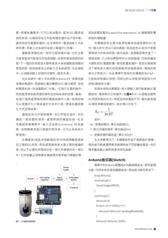 www.edntaiwan.com 41DESIGN IDEAS%u58d3%u3002%u6839%u64da%u80fd%u91cf%u9700%u6c42%uff0c%u5b83%u53ef%u4ee5%u4f86%u81ea%u96fb%u6c60%u3001%u76f4%u6d41(DC)%u96fb%u6e90%u6216%u5176%u4ed6%u4f86%u6e90%uff0c%u4ee5%u78ba%u4fdd%u6240%u6709%u5143%u4ef6%u80fd%u5920%u7a69%u5b9a%u904b%u4f5c%u4e14%u4e0d%u53d7%u4e2d%u65b7%uff0c%u7dad%u6301%u7279%u5b9a%u7684%u96fb%u58d3%u548c%u96fb%u6d41%u3002%u5728%u672c%u6848%u4f8b%u4e2d%uff0c%u96fb%u6e90%u7531%u5d4c%u5165%u5f0f%u7cfb%u7d71%u4f9b%u61c9%uff0c%u800c%u5d4c%u5165%u5f0f%u7cfb%u7d71%u5247%u7531%u500b%u4eba%u96fb%u8166(PC)%u4f9b%u96fb%u3002%u904b%u52d5%u611f%u6e2c%u5668%u5728%u524d%u4e00%u90e8%u4efd%u5df2%u7d93%u8a73%u7d30%u8a0e%u8ad6%uff0c%u5b83%u7684%u4e3b%u8981%u529f%u80fd%u662f%u76e3%u6e2c%u53ef%u80fd%u767c%u751f%u7684%u5730%u9762%u632f%u52d5%uff0c%u4e26%u63d0%u4f9b%u6975%u5176%u5fae%u5f31%u7684%u8a0a%u865f%u3002%u4e0b%u4e00%u968e%u6bb5%u7684%u8a0a%u865f%u653e%u5927%u5668%u5247%u6703%u653e%u5927%u4f86%u81ea%u904b%u52d5%u611f%u6e2c%u5668%u7684%u5fae%u5f31%u8a0a%u865f%uff0c%u4f7f%u5176%u5f37%u5ea6%u8db3%u4ee5%u4f9b%u5d4c%u5165%u5f0f%u7cfb%u7d71%u8655%u7406%u3002%u5728%u6b64%u904e%u7a0b%u4e2d%uff0c%u5fc5%u9808%u78ba%u4fdd%u8f38%u5165%u8a0a%u865f%u7684%u5b8c%u6574%u6027%uff0c%u907f%u514d%u5931%u771f%u3002%u5728%u6b64%u7cfb%u7d71%u4e2d%uff0c%u5d4c%u5165%u5f0f%u7cfb%u7d71%u662fArduino R4%uff0c%u8ca0%u8cac%u5f9e%u611f%u6e2c%u5668%u6536%u96c6%u8cc7%u6599%uff0c%u900f%u904e%u985e%u6bd4%u6578%u4f4d%u8f49%u63db(ADC)%u9032%u884c%u8655%u7406%uff0c%u4e26%u63a7%u5236%u6574%u500b%u7cfb%u7d71%u3002%u4f5c%u70ba%u96fb%u8def%u7684%u300c%u5927%u8166%u300d%uff0c%u5b83%u57f7%u884c%u4e3b%u8981%u7684%u64cd%u4f5c%uff0c%u4f8b%u5982%u8655%u7406%u4f86%u81ea%u611f%u6e2c%u5668%u7684%u8cc7%u6599%u4e26%u63a7%u5236%u7cfb%u7d71%u7684%u56de%u61c9%u3002%u6700%u5f8c%uff0c%u524d%u7aef%u4ecb%u9762%u5c07%u8655%u7406%u5f8c%u7684%u8cc7%u6599%u50b3%u905e%u7d66%u64cd%u4f5c%u4eba%u54e1%u3002%u9019%u500b%u524d%u7aef%u53ef%u4ee5%u662f%u5716%u5f62%u5316%u4ecb%u9762%u6216%u57fa%u65bc%u6587%u672c%u7684%u4ecb%u9762%uff0c%u900f%u904e%u5404%u7a2e%u8996%u89ba%u5316%u65b9%u5f0f%u5448%u73fe%u7d50%u679c%u3002%u5118%u7ba1%u9019%u4e9b%u5143%u4ef6%u76f8%u5c0d%u7c21%u55ae%uff0c%u4f46%u5b83%u5011%u76f8%u4e92%u5354%u4f5c%uff0c%u5171%u540c%u69cb %u6210%u4e00 %u500b %u5b8c %u6574 %u7684 %u5075 %u6e2c%u3001%u8655 %u7406 %u8207 %u8cc7 %u8a0a%u50b3 %u905e %u7cfb %u7d71%u3002%u5728 %u672c%u5730%u9707%u611f%u6e2c%u5668%u5c08%u6848%u4e2d%uff0c%u5d4c%u5165%u5f0f%u7cfb%u7d71%u4ee5 Arduino R4%u70ba%u57fa%u790e%uff0c%u4f46%u6839%u64da%u9700%u6c42%u9032%u884c%u9069%u7576%u7684%u4fee%u6539%u5f8c%uff0c%u4e5f%u53ef%u4ee5%u7528%u5176%u4ed6%u65b9%u6848%u66ff%u63db%u3002%u53bb%u8026%u96fb%u5bb9(%u6216%u76f4%u6d41%u963b%u65b7%u96fb%u5bb9)%u7684%u4f5c%u7528%u662f%u9694%u96e2%u5169%u500b%u7d1a%u5225%u4e4b%u9593%u7684DC%u8a0a%u865f%uff0c%u4f8b%u5982%u611f%u6e2c%u5668%u8207%u653e%u5927%u5668%u4e4b%u9593%u7684%u9023%u7e8c%u8a0a%u865f%uff0c%u9632%u6b62%u4e0d%u5fc5%u8981%u7684%u8a0a%u865f%u6210%u4efd%u5f9e%u4e00%u500b%u5143%u4ef6%u50b3%u905e%u5230%u53e6%u4e00%u500b%u5143%u4ef6%u3002%u5b83%u7684%u5bb9%u91cf%u5fc5%u9808%u6839%u64da%u6240%u9700%u8655%u7406%u7684%u983b%u7387%u9032%u884c%u7cbe%u78ba%u8a08%u7b97%uff0c%u56e0%u70ba%u5176%u96fb%u5bb9%u96fb%u6297(capacitive reactance%uff1bXc)%u6703%u986f%u8457%u5f71%u97ff%u8a0a%u865f%u7684%u50b3%u8f38%u91cf%u3002%u53bb%u8026%u96fb%u5bb9%u7684%u4e3b%u8981%u529f%u80fd%u662f%u963b%u65b7%u4f86%u81ea%u611f%u6e2c%u5668%u7684DC%u6210%u4efd%uff0c%u50c5%u5141%u8a31%u4ea4%u6d41(AC)%u6210%u4efd%u901a%u904e%uff0c%u56e0%u70ba%u9019%u4e9bAC%u6210%u4efd%u624d%u662f%u9700%u8981%u88ab%u653e%u5927%u7684%u6709%u6548%u8a0a%u865f%u3002%u63db%u53e5%u8a71%u8aaa%uff0c%u9019%u500b%u96fb%u5bb9%u5668%u5145%u7576%u4e86%u4e00%u500b%u6ffe%u6ce2%u5668%uff0c%u53ea%u5141%u8a31%u76ee%u6a19%u983b%u7387%u7684AC%u8a0a%u865f%u901a%u904e%uff0c%u540c%u6642%u4fdd%u8b77%u653e%u5927%u5668%u514d%u53d7DC%u96fb%u58d3%u5f71%u97ff%uff0c%u907f%u514d%u5f71%u97ff%u5176%u904b%u4f5c%uff0c%u751a%u81f3%u5728%u6975%u7aef%u60c5%u6cc1%u4e0b%u5c0e%u81f4%u653e%u5927%u5668%u5931%u6548%u6216%u640d%u58de(%u4f8b%u5982%u904e%u5ea6%u63a5%u5730%uff0c%u5c0e%u81f4%u8a0a%u865f%u7121%u6cd5%u6b63%u5e38%u653e%u5927)%u3002%u5728%u6b64%u5c08%u6848%u4e2d%u4f7f%u7528%u7684%u53bb%u8026%u96fb%u5bb9%u70ba47%u00b5F%uff0c%u5b83%u80fd%u6709%u6548%u963b%u64cbDC%u8a0a%u865f%uff0c%u540c%u6642%u5141%u8a31AC%u8a0a%u865f(%u5373%u5e0c%u671b%u653e%u5927%u7684%u8a0a%u865f)%u901a%u904e%u653e%u5927%u5668%u3002%u5982%u679c%u672a%u4f7f%u7528%u53bb%u8026%u96fb%u5bb9%uff0c%u653e%u5927%u5668%u8f38%u5165%u7aef%u53ef%u80fd%u6703%u88abDC%u96fb%u58d3%u63a5%u5730%uff0c%u5c0e%u81f4%u7121%u6cd5%u6b63%u5e38%u904b%u4f5c%u3002%u5982%u57164%u6240%u793a%uff0cXc%u662f%u96fb%u5bb9%u5668%u5c0dAC%u8a0a%u865f%u7684%u963b%u6297%u5f62%u5f0f%u3002%u8207%u56fa%u5b9a%u7684%u7d14%u96fb%u963b%u4e0d%u540c%uff0c%u96fb%u6297%u6703%u6839%u64daAC%u983b%u7387%u8207%u96fb%u5bb9%u503c%u8b8a%u5316%uff0c%u5176%u8a08%u7b97%u516c%u5f0f%u5982%u4e0b%uff1a%u5176%u4e2d%uff1a%u2022Xc%uff1a%u662f%u96fb%u5bb9%u96fb%u6297%uff0c%u55ae%u4f4d%u70ba%u6b50%u59c6(%u03a9)%u2022f%uff1a%u662f%u4ea4%u6d41%u96fb%u7684%u983b%u7387%uff0c%u55ae%u4f4d%u8d6b%u8332(Hz)%u2022C%uff1a%u662f%u96fb%u5bb9%u5668%u7684%u96fb%u5bb9%u503c%uff0c%u55ae%u4f4d%u6cd5%u62c9(F)%u5728%u5927%u591a%u6578%u60c5%u6cc1%u4e0b%uff0c%u53bb%u8026%u96fb%u5bb9%u7684%u503c%u4e0d%u9700%u8981%u904e%u65bc%u7cbe%u78ba%uff0c%u4f7f%u7528%u8005%u53ef%u6839%u64da%u5be6%u969b%u9700%u6c42%u9078%u64c7%u7a0d%u6709%u4e0d%u540c%u5bb9%u91cf%u7684%u96fb%u5bb9%uff0c%u4f46%u4ecd%u9700%u8003%u91cf%u5176%u622a%u6b62%u983b%u7387%u8207%u6ffe%u6ce2%u7279%u6027%u66f2%u7dda%u3002Arduino%u7a0b%u5f0f%u78bc(Sketch)%u5c08%u6848%u4e2d%u7684Arduino%u97cc%u9ad4%u8a2d%u8a08%u70ba%u6700%u7cbe%u7c21%u7248%u672c%uff0c%u63d0%u4f9b%u57fa%u790e%u529f%u80fd%uff0c%u53ef%u4f9b%u672a%u4f86%u6539%u9032%u8207%u64f4%u5c55%u4f7f%u7528%u3002%u539f%u59cb%u7a0b%u5f0f%u78bc%u5217%u8868%u5982%u4e0b%uff1along lettura1;void setup() { Serial.begi